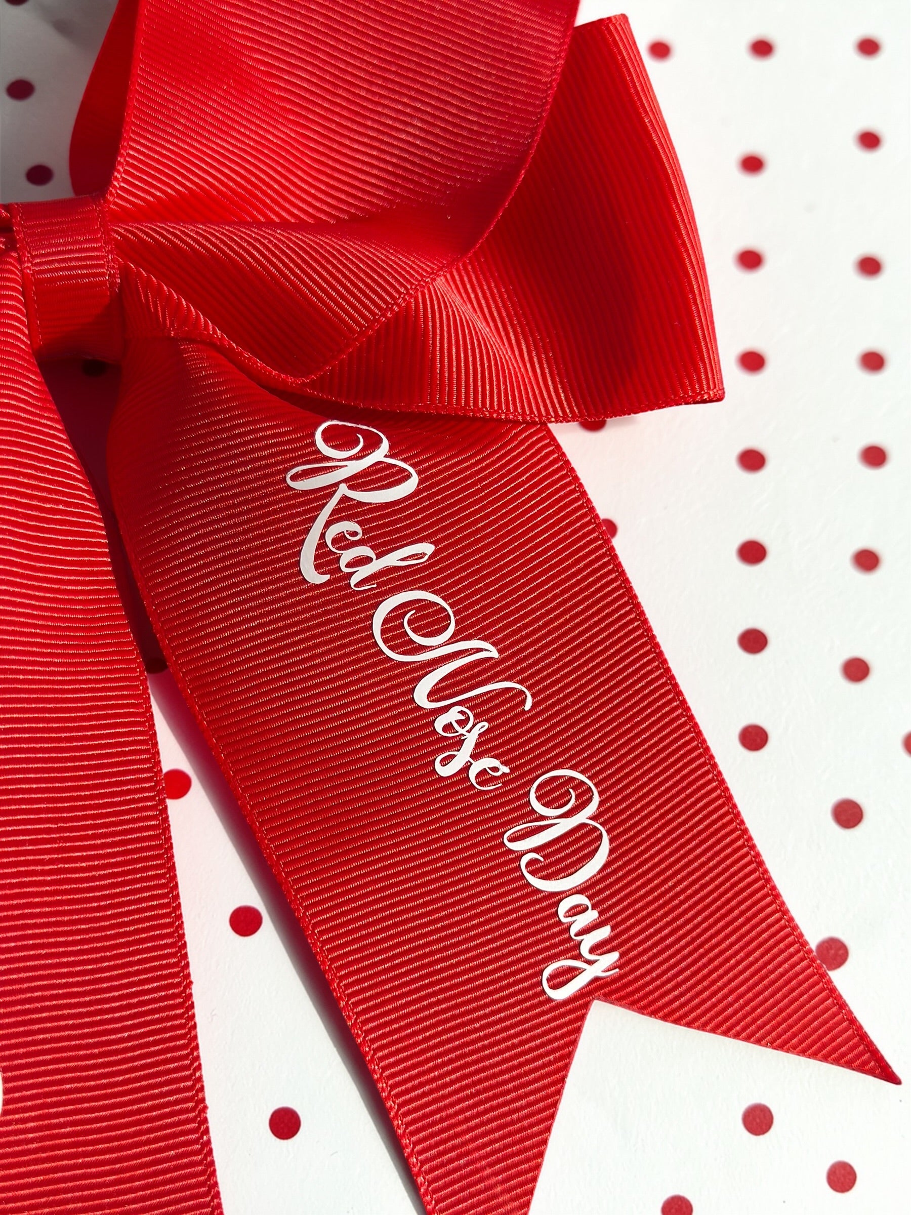 Celebrate Red Nose Day in style with this personalised 6 inch red hair bow, made from high-quality grosgrain ribbon and finished with your chosen name in white script.